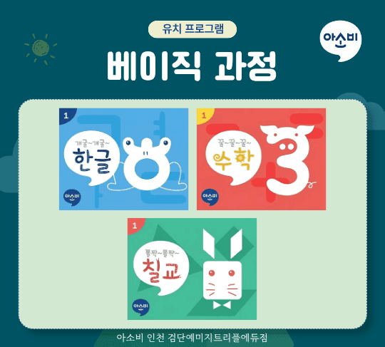 베이직 과정은 공부를 처음 접하는 아이가 학습의 기본 감각을 자연스럽게 익혀가는 단계로, 한글과 수학의 기초 개념을 중심으로 학습 흥미와 집중력을 키우는 입문 과정입니다.